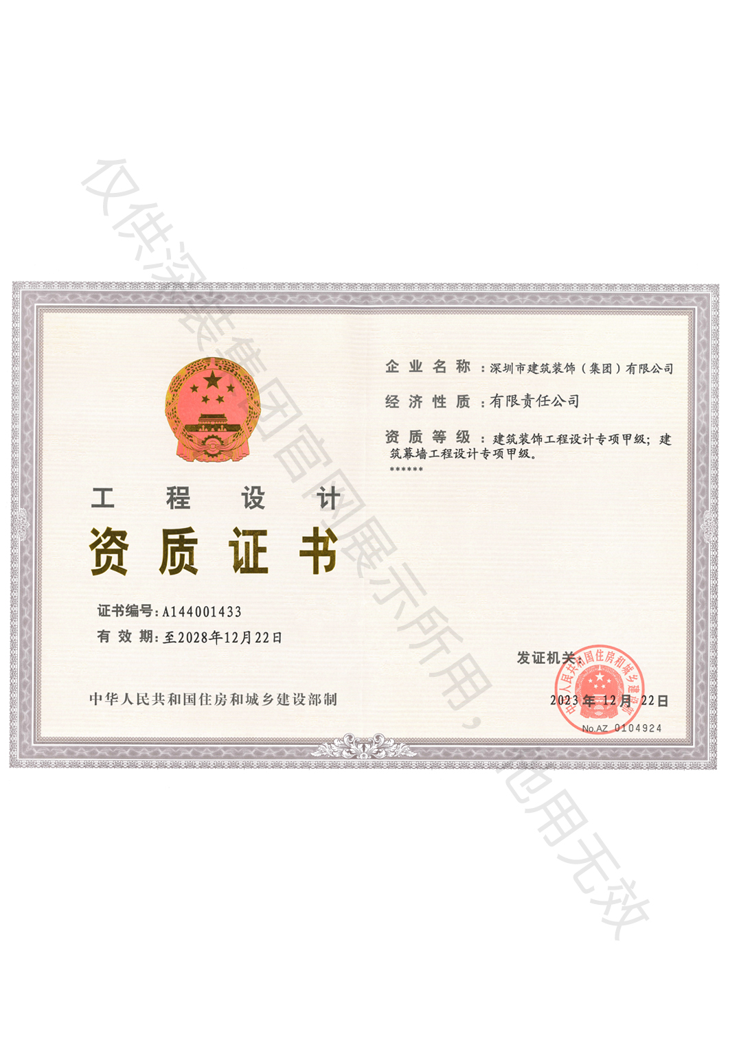 建筑裝飾工程設(shè)計(jì)專(zhuān)項(xiàng)甲級(jí)