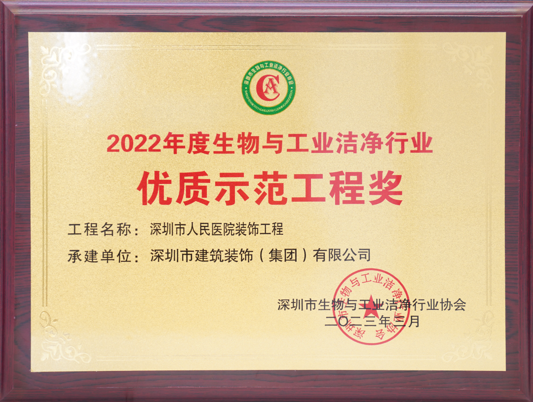 近日,2023第七屆大灣區(qū)潔凈高技術產(chǎn)業(yè)高峰論壇在深圳市南山區(qū)隆重舉行。會上,深圳市建筑裝飾(集團)有限公司承建的深圳市人民醫(yī)院裝飾工程榮獲“2022年度潔凈行業(yè)優(yōu)質工程獎”,深裝集團黨委書記、董事長兼總裁吳富貴榮獲“2022年度潔凈行業(yè)領軍人物”稱號。