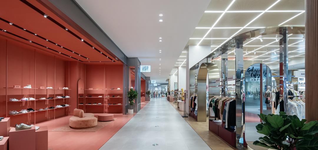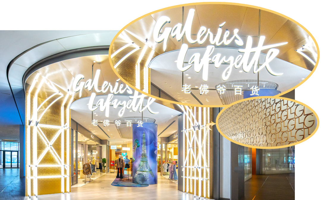 櫥窗內(nèi)色彩跳躍的中式山水背景,與埃菲爾鐵塔及源于巴黎老佛爺百貨的經(jīng)典穹頂元素融合,集團(tuán)以精湛建設(shè)水準(zhǔn)完美展現(xiàn)由法國(guó)知名藝術(shù)家GGSV打造的藝術(shù)櫥窗及服飾展區(qū),助力完成跨界創(chuàng)新,呈現(xiàn)出活力滿滿的業(yè)態(tài)氛圍。