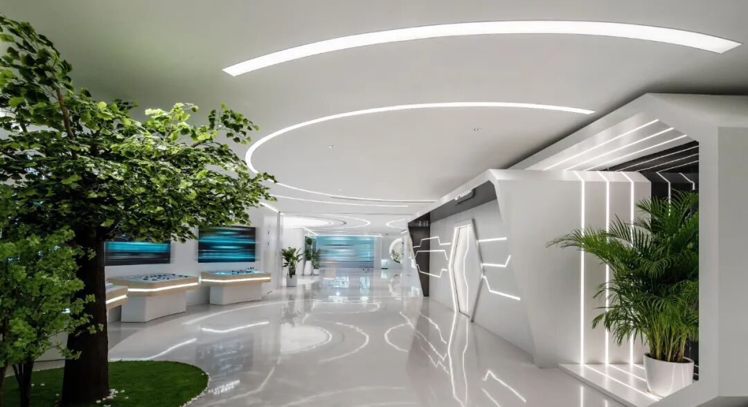 集團(tuán)以大量弧線造型打破空間慣有幾何形態(tài),營(yíng)造極簡(jiǎn)又極富科技感的空間氛圍,成就集數(shù)字化、國(guó)際化、高標(biāo)準(zhǔn)一體的新型展示空間,系統(tǒng)性展現(xiàn)數(shù)字能源業(yè)務(wù)全景,豐富空間體驗(yàn)和品牌內(nèi)核。