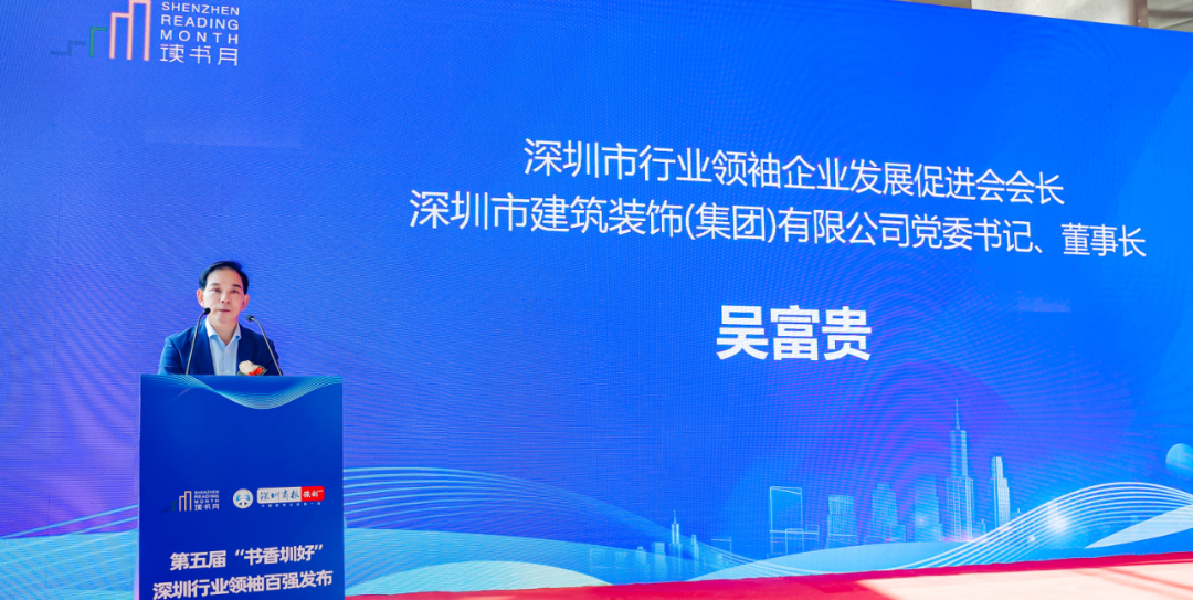 近日,第五屆“書香圳好”深圳行業(yè)領(lǐng)袖百強(qiáng)發(fā)布暨頒獎(jiǎng)典禮在深圳市福田區(qū)隆重舉行。深圳市政府領(lǐng)導(dǎo)、市人大代表、市政協(xié)委員,深圳各商協(xié)會(huì)會(huì)長、行業(yè)領(lǐng)袖企業(yè)代表、新聞媒體共200余人參與盛典。深圳市行業(yè)領(lǐng)袖企業(yè)發(fā)展促進(jìn)會(huì)會(huì)長,深圳市建筑裝飾(集團(tuán))有限公司黨委書記、董事長吳富貴受邀出席本次活動(dòng)并發(fā)表致辭。