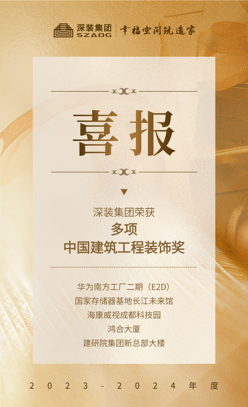 近日,經(jīng)專家評(píng)審會(huì)審定,中國(guó)建筑裝飾協(xié)會(huì)核準(zhǔn),2023-2024年度中國(guó)建筑工程裝飾獎(jiǎng)第一批入選工程名單正式公布,深圳市建筑裝飾(集團(tuán))有限公司承建的華為南方工廠二期(E2D)、國(guó)家存儲(chǔ)器基地長(zhǎng)江未來館、??低暢啥伎萍紙@、鴻合大廈二期、建研院集團(tuán)新總部大樓等室內(nèi)裝飾工程榮獲2023-2024年度中國(guó)建筑工程裝飾獎(jiǎng),至此深裝集團(tuán)已累計(jì)斬獲近350項(xiàng)國(guó)家級(jí)工程獎(jiǎng)項(xiàng),充分彰顯集團(tuán)建設(shè)品質(zhì)、科創(chuàng)能力、設(shè)計(jì)水平的杰出競(jìng)爭(zhēng)力。