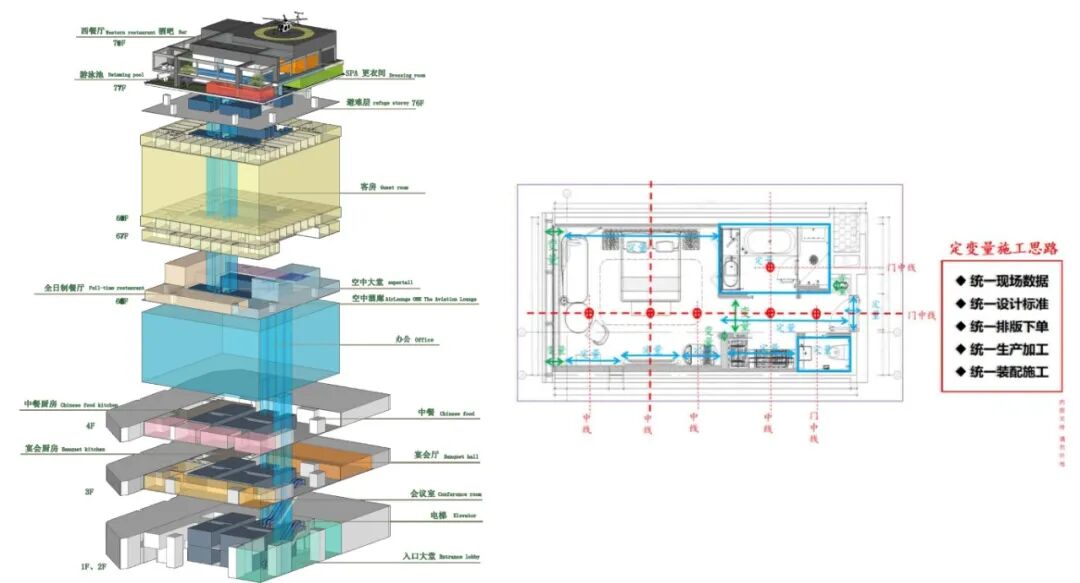 深灣匯云中心五期香格里拉酒店項(xiàng)目是集團(tuán)承建的城市地標(biāo)性五星級(jí)酒店裝飾項(xiàng)目,其客房戶型和材料為統(tǒng)一標(biāo)準(zhǔn)化尺寸規(guī)格,具備標(biāo)準(zhǔn)化施工應(yīng)用條件。