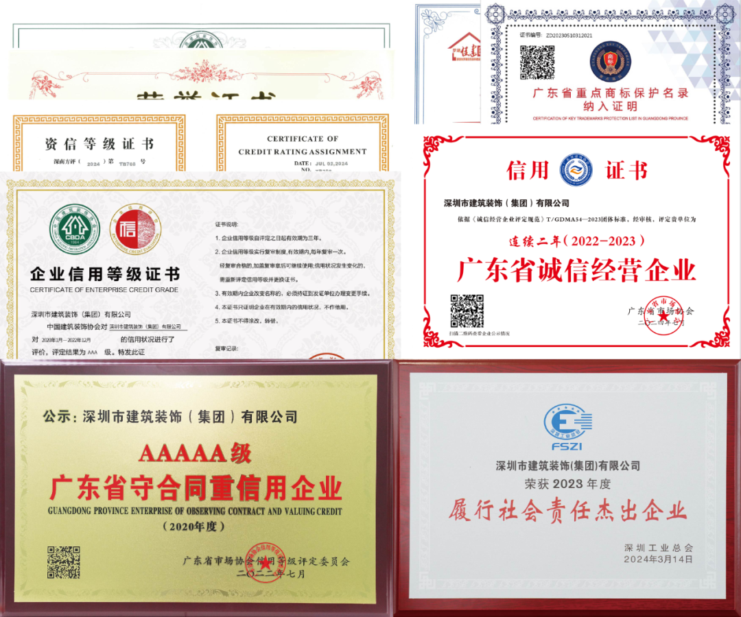 誠(chéng)信不僅是企業(yè)贏得市場(chǎng)信任的基石,更是推動(dòng)其高質(zhì)量發(fā)展的強(qiáng)勁動(dòng)力。深裝集團(tuán)成立39年來(lái),堅(jiān)定不移將“誠(chéng)信、責(zé)任、擔(dān)當(dāng)”作為企業(yè)發(fā)展和建設(shè)的首要價(jià)值理念,圍繞打造誠(chéng)信企業(yè)的目標(biāo),遵守國(guó)家法律法規(guī)與行業(yè)規(guī)范,不斷完善信用管理制度,強(qiáng)化誠(chéng)信合規(guī)體系建設(shè),矢志攻堅(jiān)市場(chǎng)開(kāi)拓,依法誠(chéng)信經(jīng)營(yíng),與業(yè)主、供應(yīng)商、合作伙伴精誠(chéng)協(xié)作、共謀發(fā)展,積極維護(hù)市場(chǎng)秩序,樹(shù)立行業(yè)信用典范,先后榮獲“新時(shí)代企業(yè)誠(chéng)信文化先進(jìn)單位”“企業(yè)信用AAA等級(jí)證書(shū)”“資信AAA等級(jí)證書(shū)”“履行社會(huì)責(zé)任杰出企業(yè)”“廣東省誠(chéng)信經(jīng)營(yíng)企業(yè)”“廣東省重點(diǎn)商標(biāo)保護(hù)名錄”“首批質(zhì)量信譽(yù)服務(wù)承諾企業(yè)”“項(xiàng)目投標(biāo)資格信用等級(jí)證書(shū)”“羅湖區(qū)建筑市場(chǎng)誠(chéng)信優(yōu)質(zhì)企業(yè)”等殊榮,深受社會(huì)各界認(rèn)可。