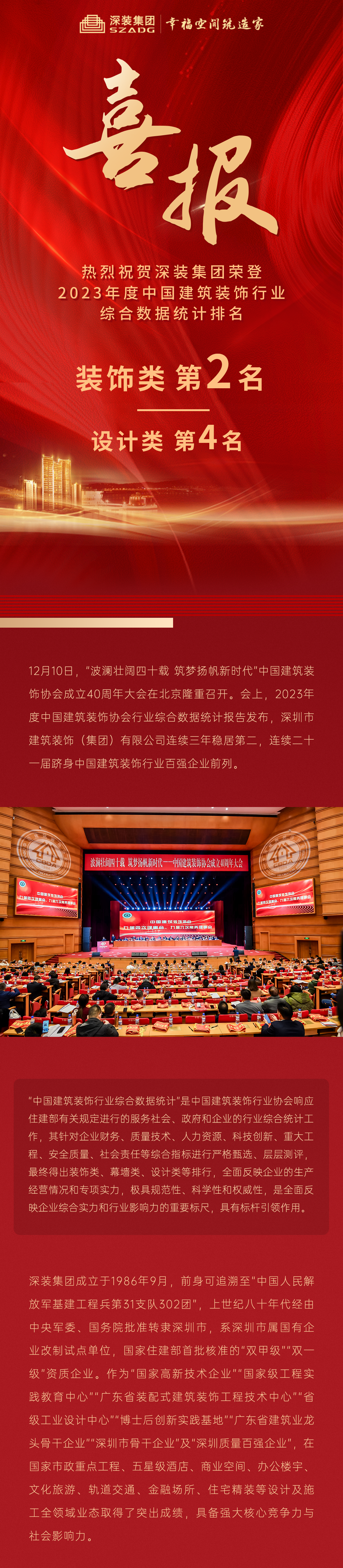 全國第二!深裝集團連續(xù)三年穩(wěn)踞中國建筑裝飾行業(yè)百強第二位
