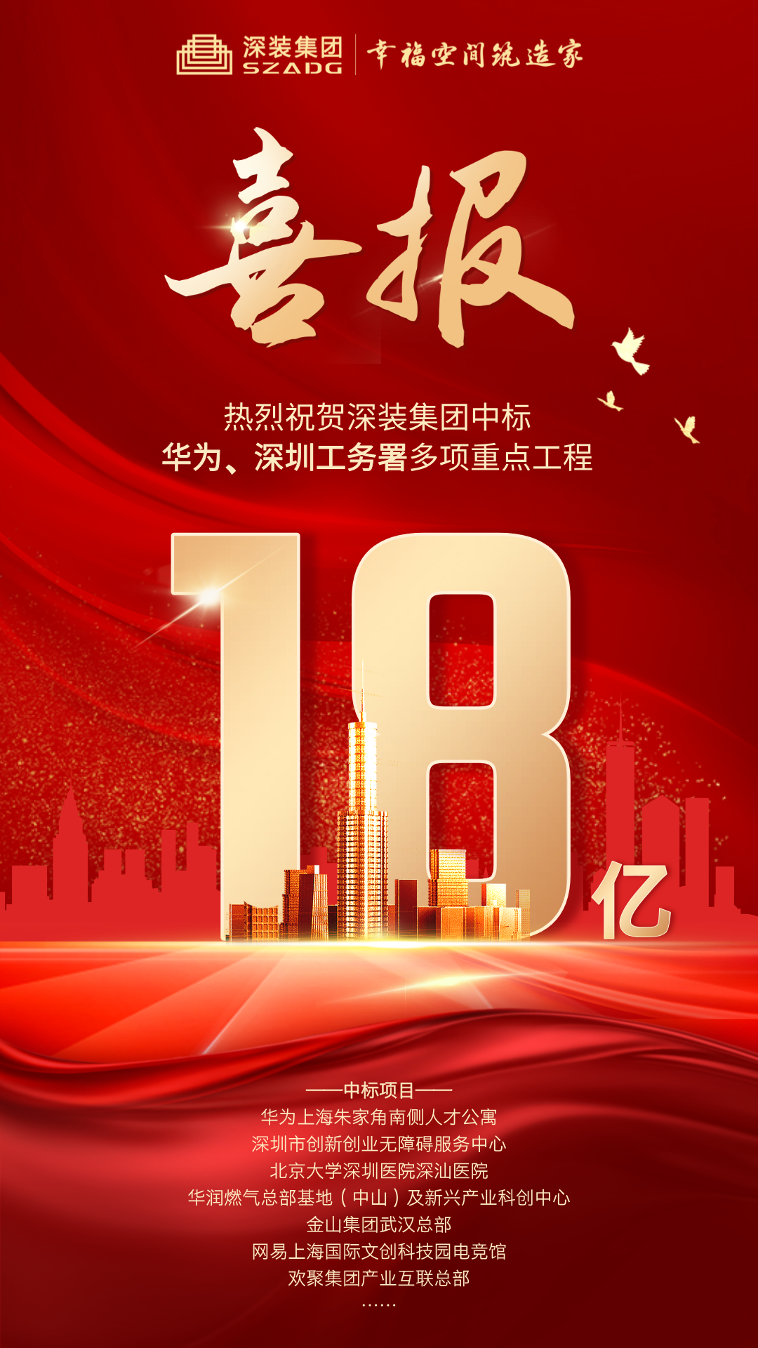 近期,深圳市建筑裝飾(集團)有限公司市場開拓捷報頻傳,接連中標華為上海朱家角南側(cè)人才公寓、深圳市創(chuàng)新創(chuàng)業(yè)無障礙服務(wù)中心、北京大學(xué)深圳醫(yī)院深汕醫(yī)院、華潤燃氣總部基地(中山)及新興產(chǎn)業(yè)科創(chuàng)中心、金山集團武漢總部、網(wǎng)易上海國際文創(chuàng)科技園、歡聚集團產(chǎn)業(yè)互聯(lián)總部等多項重點工程,中標金額約18億元,展現(xiàn)強勁發(fā)展姿態(tài)。