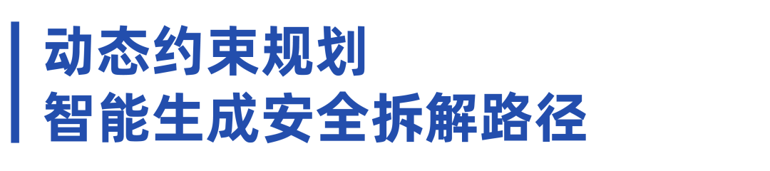 依托逆向BIM模型與構(gòu)件屬性集,系統(tǒng)集成結(jié)構(gòu)力學仿真分析模塊,動態(tài)構(gòu)建包含力學平衡、承重限制、穩(wěn)定性要求等約束條件的拆解路徑規(guī)劃機制。系統(tǒng)生成數(shù)百種潛在拆解方案,并基于建筑結(jié)構(gòu)安全約束條件,篩選出滿足力學穩(wěn)定要求、兼顧效率與低碳目標的可行拆解路徑集。同時,該過程實現(xiàn)了拆解方案的智能優(yōu)化與風險預控,有效降低因人工經(jīng)驗依賴帶來的不確定性。