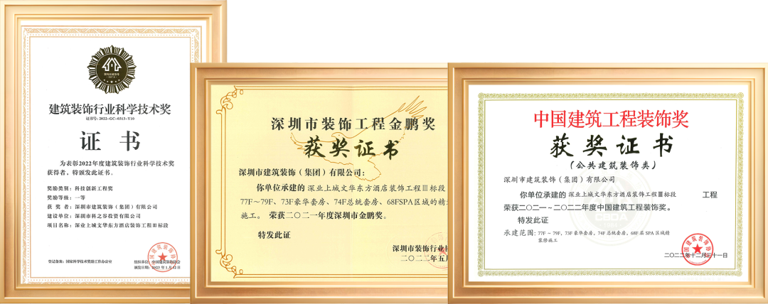 近日,由中國建筑裝飾協(xié)會(huì)組織舉辦的第二屆建筑裝飾工程施工組織設(shè)計(jì)大賽獲獎(jiǎng)名單揭曉,深裝集團(tuán)斬獲兩項(xiàng)重磅榮譽(yù):深業(yè)上城文華東方酒店裝飾工程Ⅲ標(biāo)段項(xiàng)目榮獲特等獎(jiǎng),鴻合大廈項(xiàng)目精裝修一期施工項(xiàng)目榮獲銀獎(jiǎng)。兩項(xiàng)榮譽(yù)不僅是深裝集團(tuán)技術(shù)創(chuàng)新、綠色施工與質(zhì)量管理硬核實(shí)力的印證,更是行業(yè)對(duì)其引領(lǐng)地位的再度認(rèn)可。
